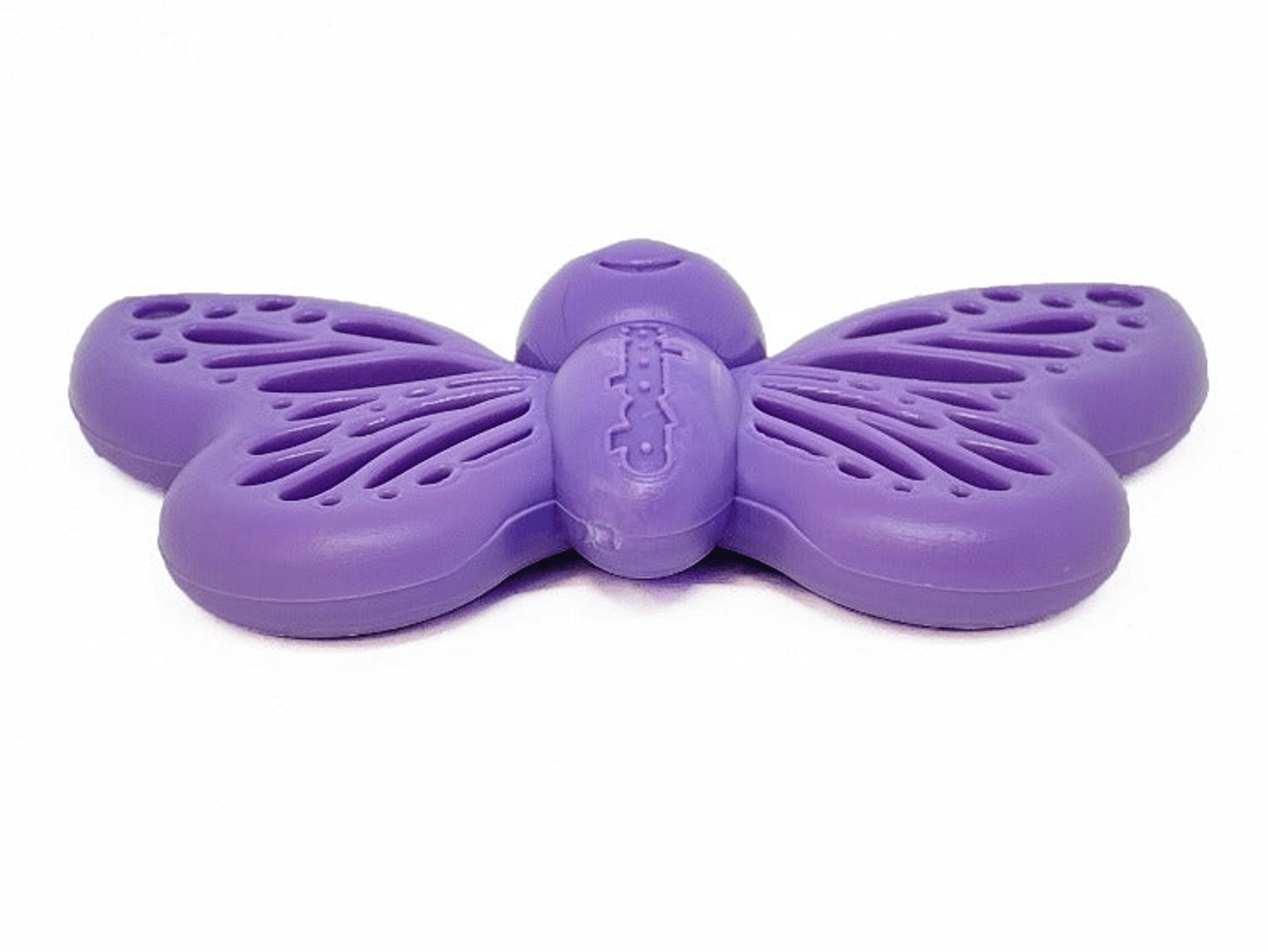 ENRICHMENT: A Butterfly that dispenses peanut butter! Spread peanut butter into the holes on the wings of this durable nylon toy to give your dog a fun and rewarding challenge.