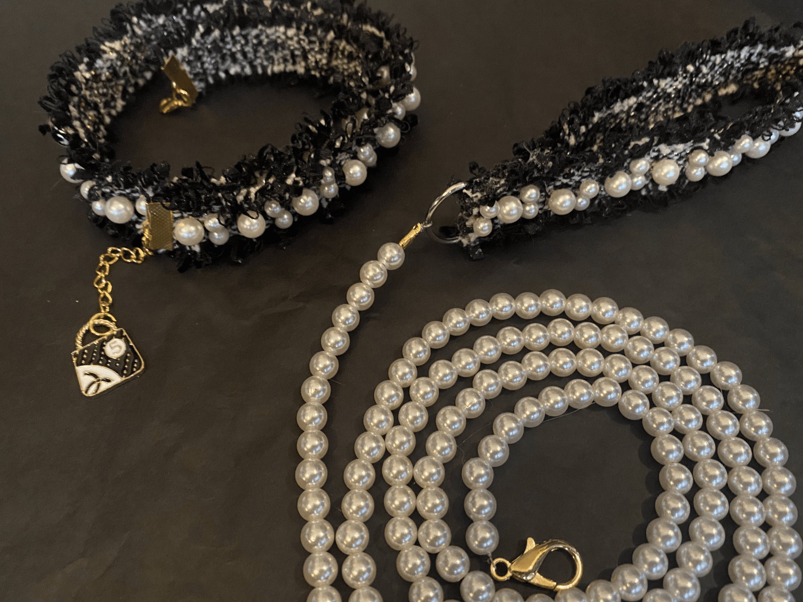 Luxurious Pearl & tweed leash ?Essential item for fashionista pooches!? Pair with our Luxurious Tweed collar and bows!