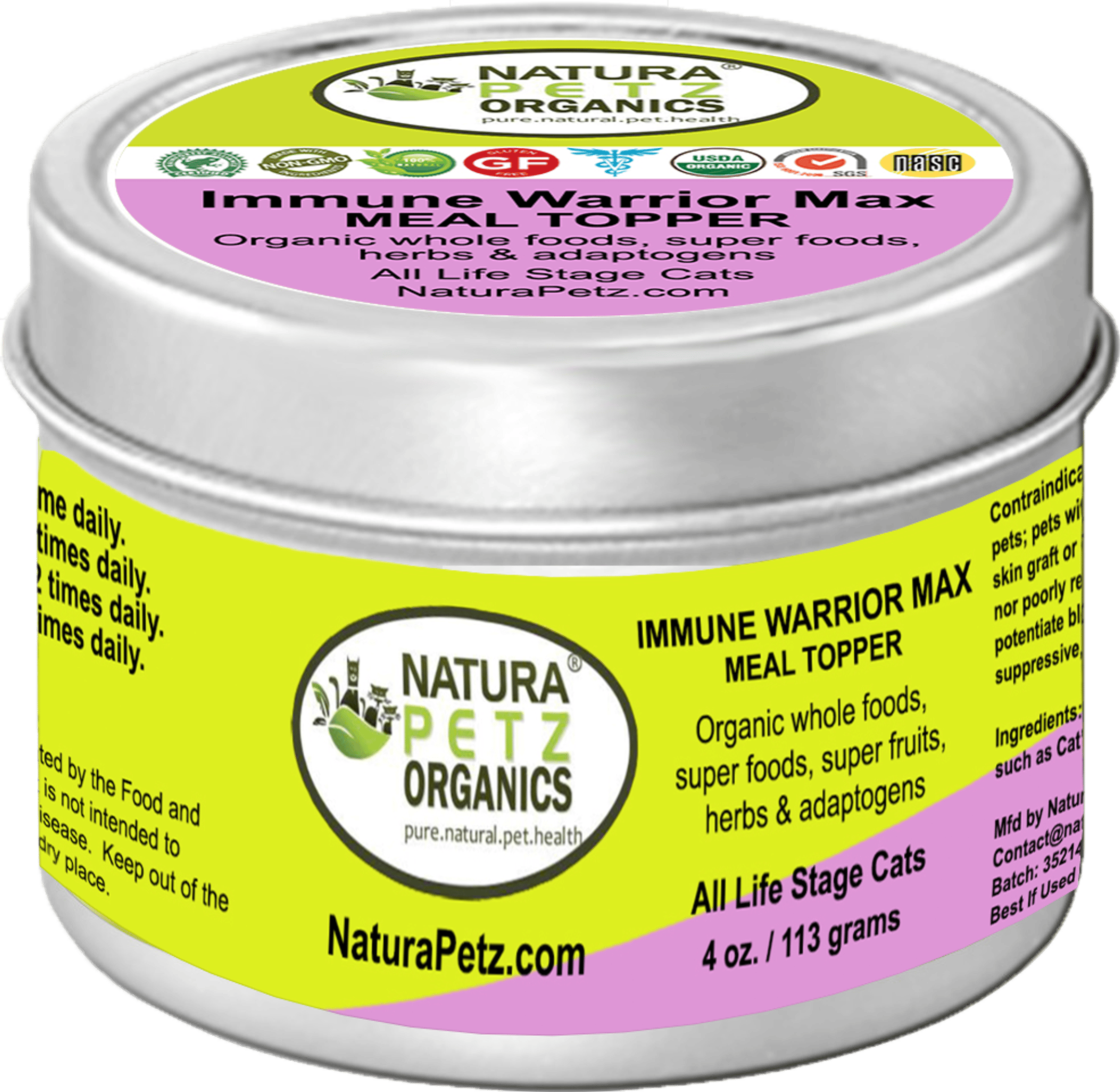 Our whole food, organic, flavored IMMUNE WARRIOR MAX MEAL TOPPER offers a convenient solution for pet-parents to top off? their dog or cat's nutrition to help encourage whole body balance and to optimize feline and canine health.