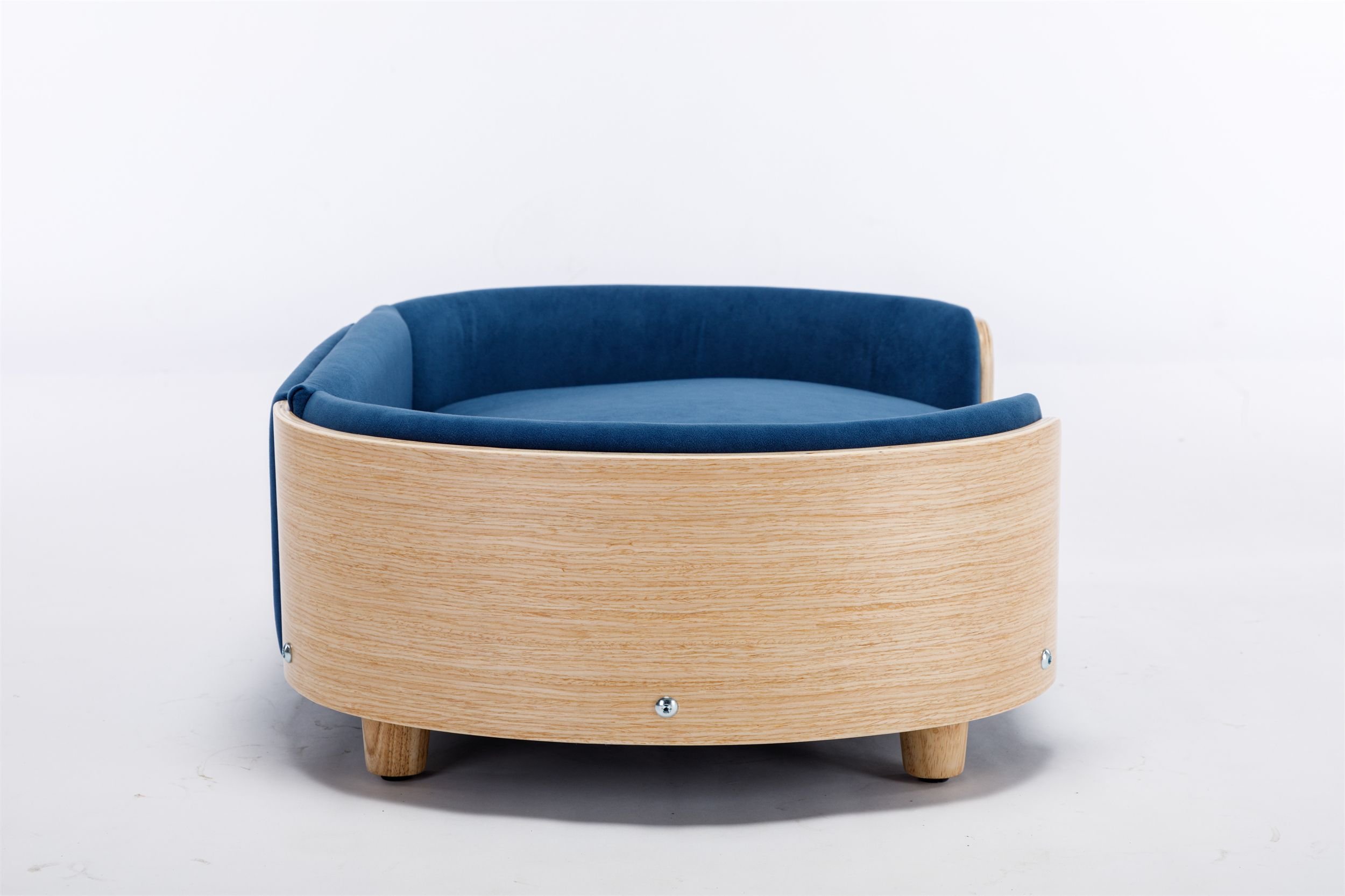 Scandinavian style Elevated Dog Bed Pet Sofa With Solid Wood legs and Bent Wood Back, Velvet Cushion,Mid Size,Dark Blue