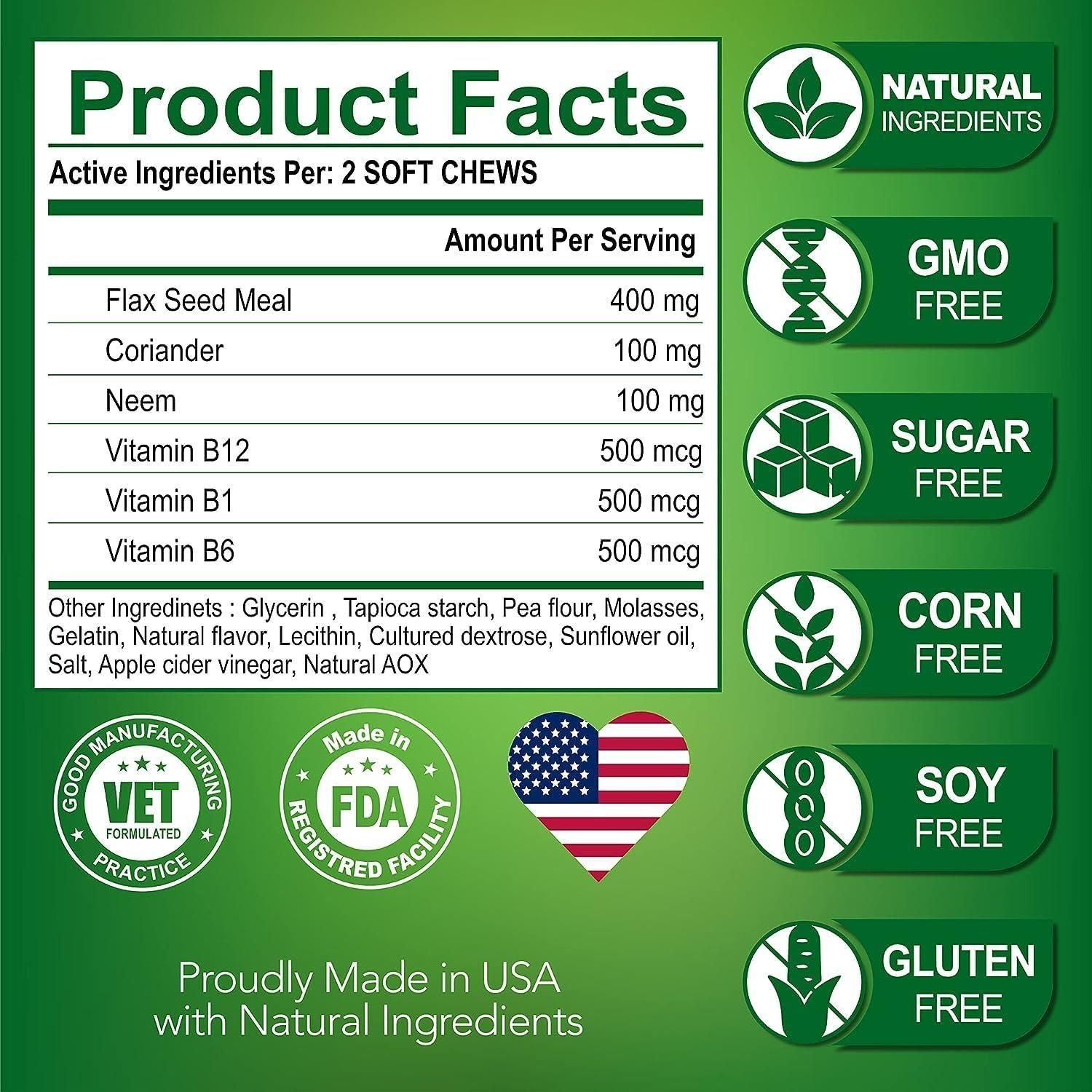 5.premium natural ingredients give results no added sugar, wheat, corn, gmos or preservatives. we are committed to using only best ingredients that deliver results in our flea and tick chewables for dogs