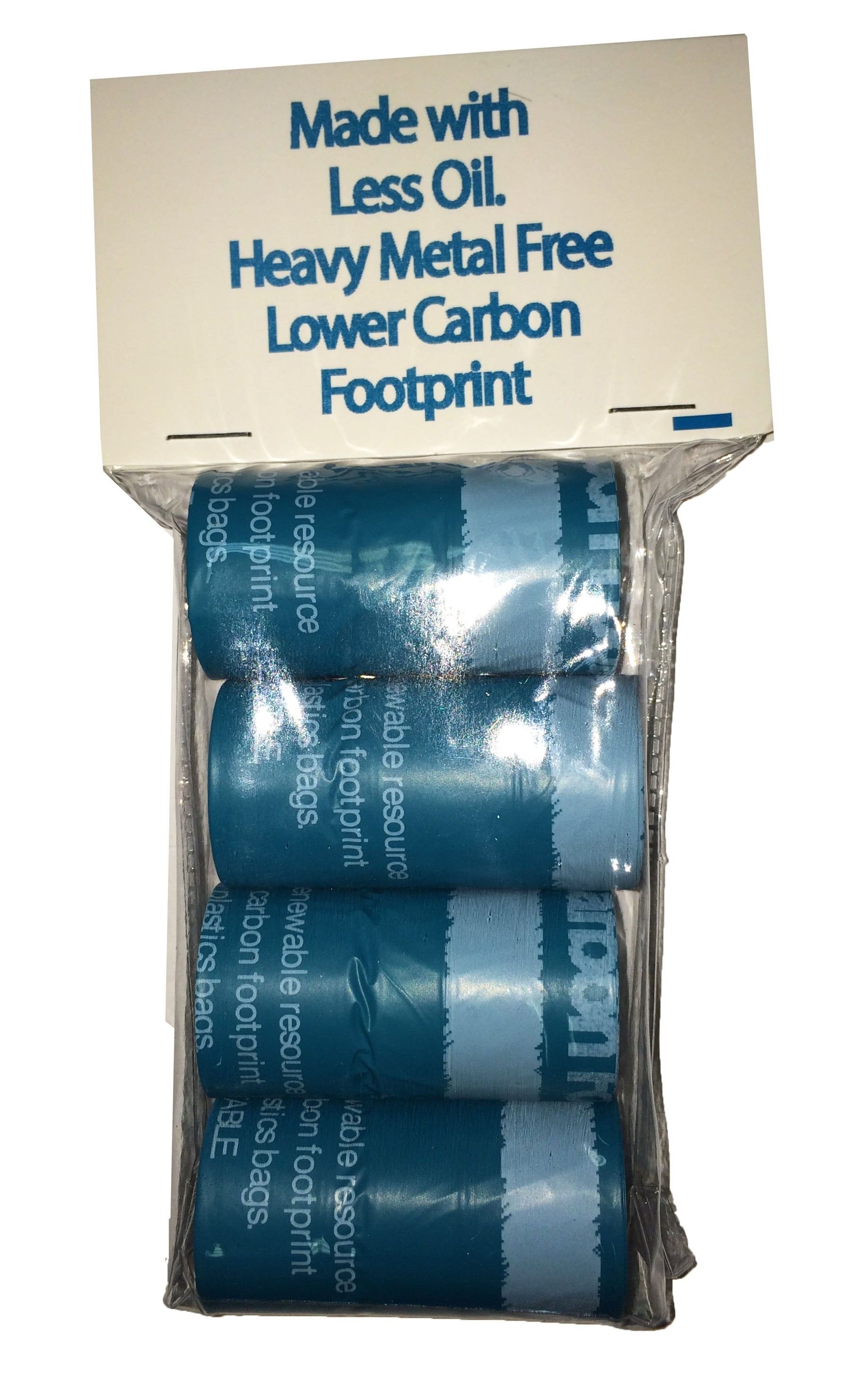 The 100% Recyclable Bio-Hybrid Thermoplastic and Polyethylene Carbon Reduced Eco-Friendly Pet Waste Bags are composed of a blend of Renewable Thermoplastic Starch (TPS) and Polyethylene (PE). This blended resin grade is compatibilised to offer a high level of Mechanical strength, outstanding Elongation properties and Toughness Furthermore the Resin is derived from 100% Renewable Resources including Non-GMO Corn Starch and Complies with International Standards. These Pet Waste Bags are composed from facilities that leave very little Carbon Footprint. Additionally these Bags can withstand high levels of Moisture Content. Pet Life strives to better our planets ultimate agenda by collaborating with our consumers and changing the way we dispose of our Pets Waste, Let's make that effort together! Can be used for humans as well. Comes with 4 Rolls. 15 Bags per roll. 2 Roll Pack and Dispenser options are available. PRODUCT MEASUREMENTS (EACH ROLL) L x W x H 2.5 x 2 x 2