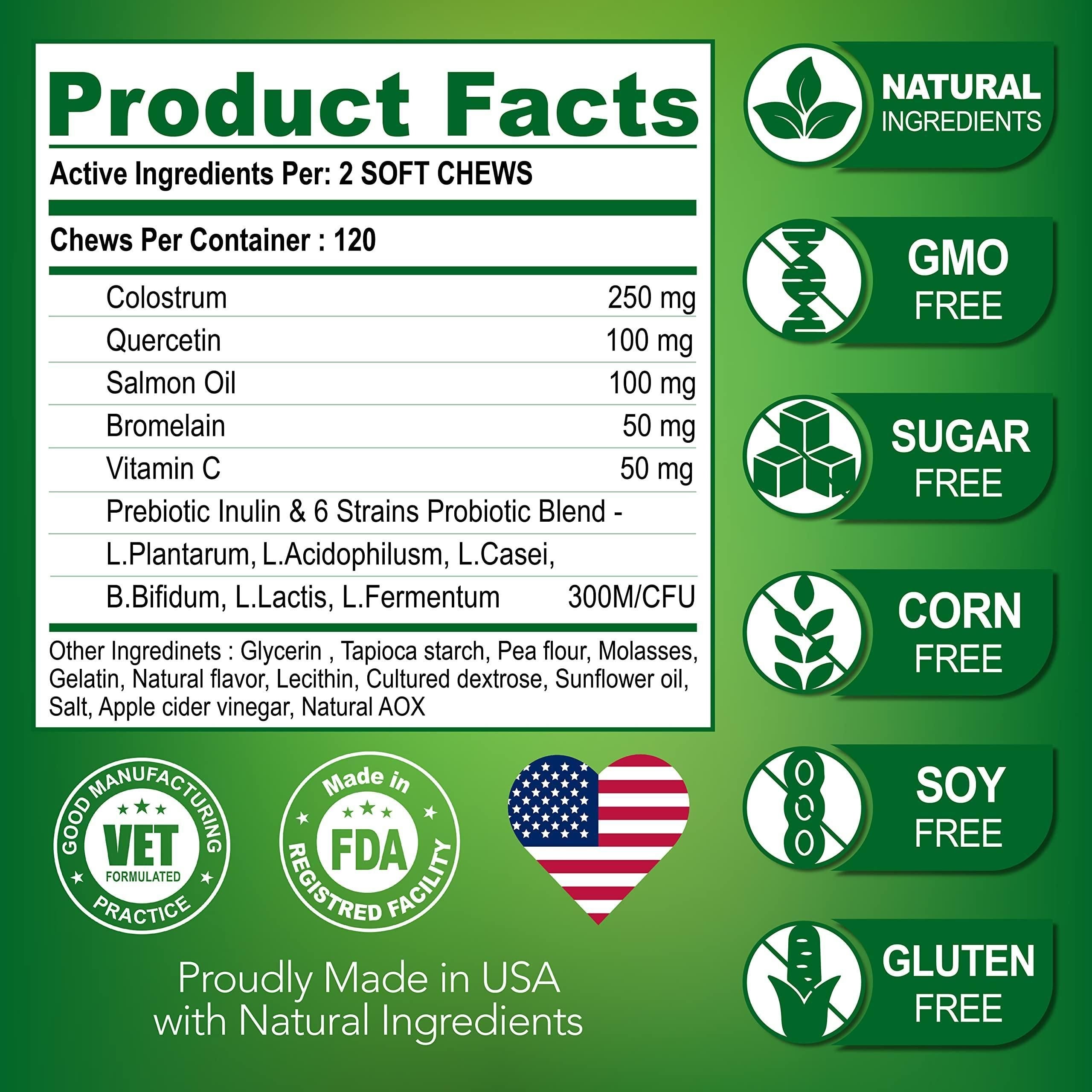 3.made in the u.s.a + vet formulatedour probiotics for dogs for allergies and itchy skin are formulated by vets in an fda-registered facility that meets the highest quality standards.