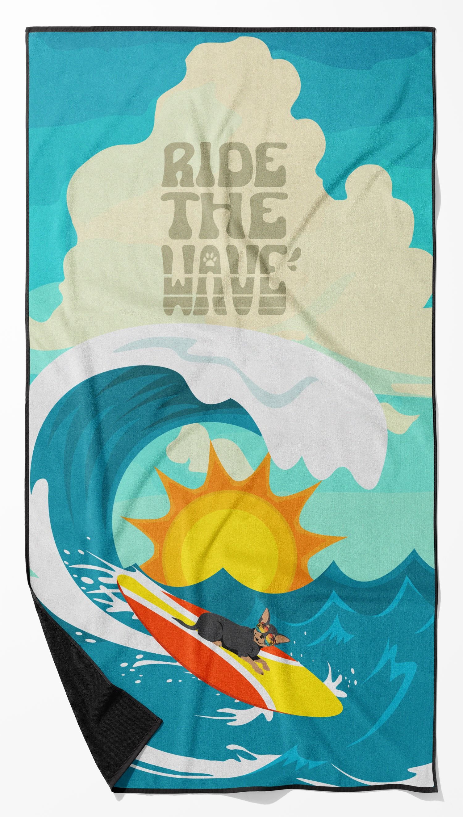 Home > Surfer Dog Black Tan Chihuahua Premium Beach Towel Oversized Towel Beach Blanket, Pool, Beach Essentials, Yoga, Premium Bath Towel, Quick Dry Plush