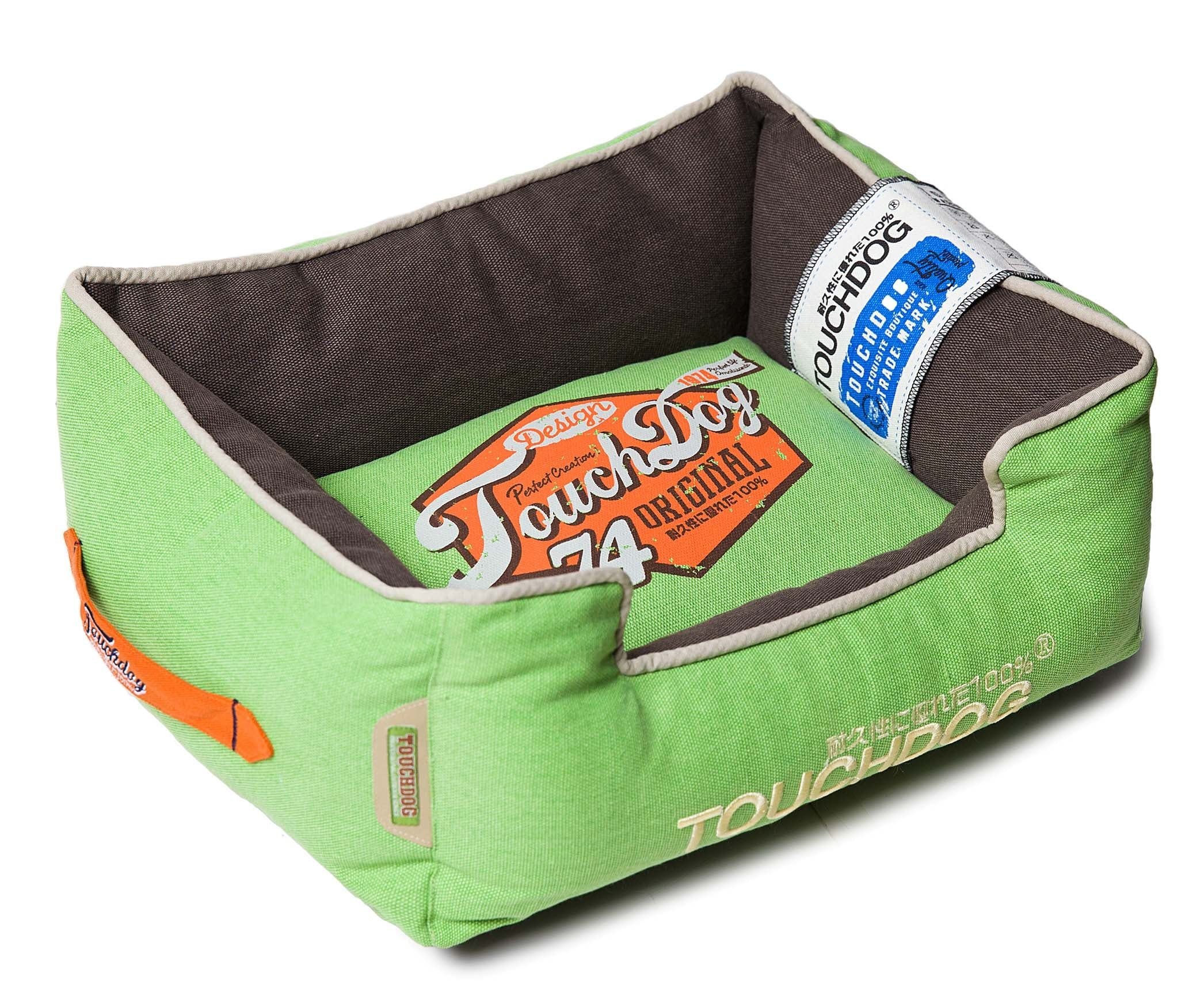 The Touchdog Original Sporty Vintage Throwback Reversible Plush Rectangular Dog Bed is composed of a Lightweight and Ultra-Plush Cotton Nylon blended Exterior with a Thicker Heavier-Grade Poly-Fill Interior. This Pet Bed is perfect for Indoor and Outdoor naps and features an accented colored Dual Sided Removable Cushion. Completed with roped webbing along the upper lip edges and a built-in side carrying handlebar, our superior beds feature much attention to detail. Additionally our Dog Beds Feature Embroidery along the front with a unique designer vintage print on the reverse cushion. Touchdog, the leading Premium Pet Brand of Tomorrow. Available in Multiple Sizes and Colors.