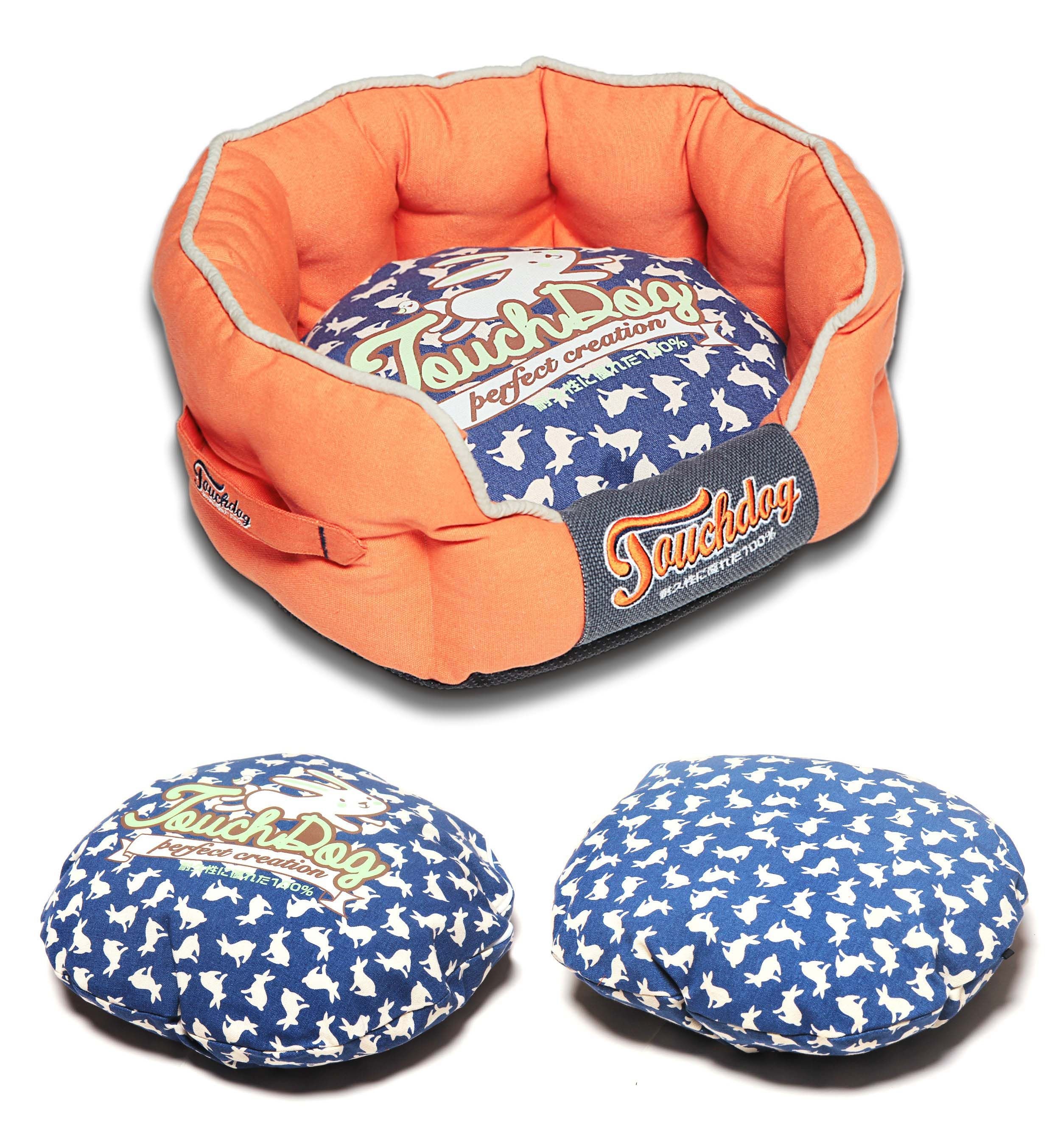 The Touchdog Rabbit-Spotted Premium Rounded Dog Bed is composed of a Cotton-Polyester Outer shell and Inner-Lined with Plush Polyester. Additionally this Pet Bed features a Reversible and Removable cushion. Has a Rounded-like appearance and features accented thick stitching along the couch borders. Complimented with the Touchdog Embroidered stamp of perfection along the front with a designer print on the accented Removable and Reversible Polyester-Cotton plush cushion. Every intrical trim is designer coordinated to compliment. Completed with a built-in side carrying handlebar. Touchdog, the leading Premium Pet Brand of Tomorrow. Available in Multiple Sizes Colors