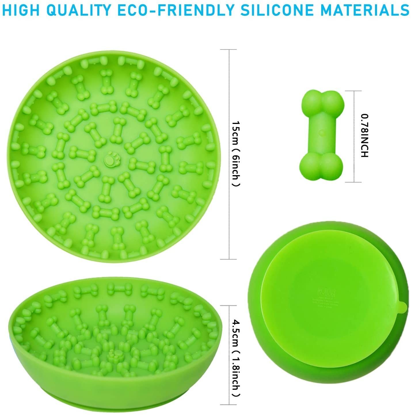 The lick bowl for dogs with bone shape inside will calm and relax your pet by distraction through the promotion of licking; Great for use during anxious and stressful situations, made from 100% food grade natural silicone, BPA free, no smell or taste, durable, strong flexibility, never deformed and food safe for you lovely pet.